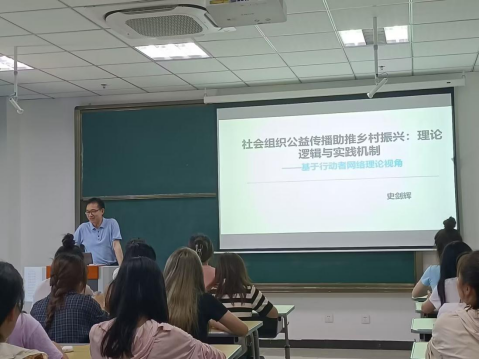 6月5日下午,我院史剑辉博士在k202作题为“社会组织公益传播助推乡村振兴:理论逻辑与实践机制——基于行动者网络理论视角”的讲座,学院师生参加。