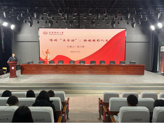 构思框架、斟酌内容、反复修改…早在两周前,张万茂便开始为报告做精心准备。“希望“五字诀”能帮助学生们树立正确的人生观和价值观,为他们的精彩人生绘制出更加明确的蓝图。”张万茂坦言,作为英国正版365官方网站的一名专职辅导员,他深知学生们正处于人生的重要阶段,面临着诸多选择和挑战,需要明确的人生方向和坚定的信念来指引他们前行。