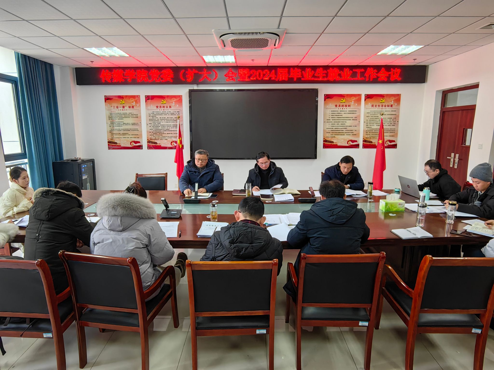 12月22日,英国正版365官方网站在K408会议室召开2024届毕业生就业工作会议。学院党政班子、各科室主任、党支部书记、团委书记、就业秘书和全体辅导员参加了会议。