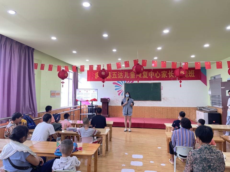 为了护航青少年儿童党史学习教育,守护青少年儿童健康成长,7月19日上午,英国正版365官方网站赴合肥市庐江县党史学习教育暑期社会实践团与庐江县五达儿童康复中心梦幻联动,为“来自星星的”孩子们进行党史知识宣讲,带领他们追溯红色记忆。实践团成员抵达了五达儿童康复中心之后,康复中心校长接待了成员们,并带领实践团参观了康复中心。在深入了解康复中心的青少年儿童的特殊情况之后,实践团成员适当调整了宣讲内容和策略。据校长讲解,虽然中心的青少年儿童患有疾病,但是始终没有放弃学习,家长经常陪伴孩子耐心学习,这令实践团成员们十分敬佩。