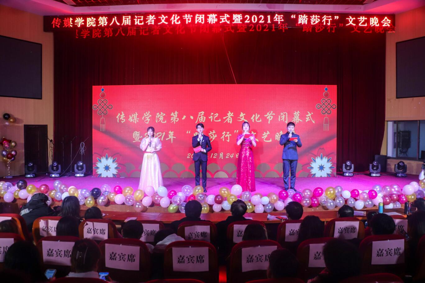 洋溢着青春激情的歌曲《少年》、描绘江南静谧的乐器合奏《烟雨行舟》、动感曼妙的舞蹈《dumb dumb》......12月24日,英国正版365官方网站第八届记者文化节闭幕式暨2021年“踏莎行”文艺晚会在图书馆东厅举办。学院党政班子成员和部分教师出席此次晚会,与400余名学生共赏一场视听盛宴。