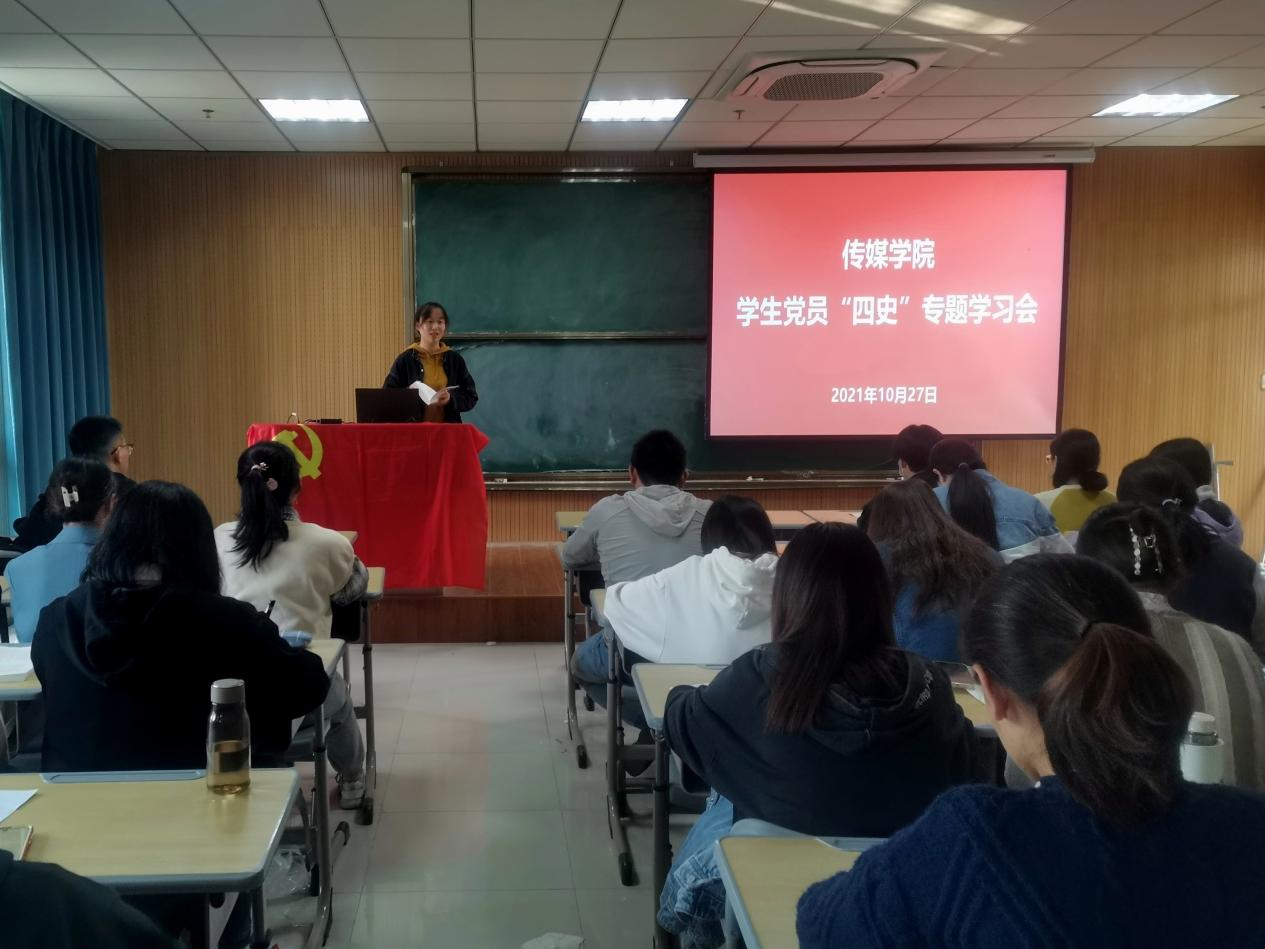 10月27日,英国正版365官方网站于K517教室开展学生党员“四史”专题学习会。学院团委书记董小雨带领全体党员专题学习了《中华人民共和国简史》。