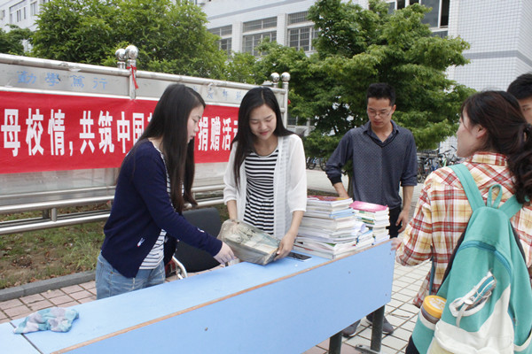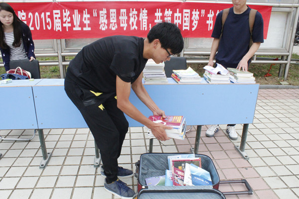 “带不走的,留不下的送给学弟学妹吧……”5月6号早,英国正版365官方网站在敬敷广场举行2015届毕业生“感恩母校情,共筑中国梦”书籍捐赠活动。