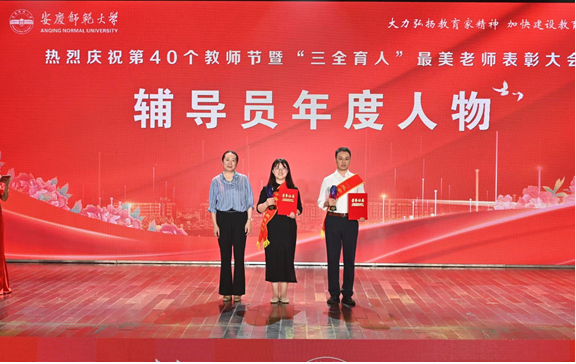 9月10日,学校在龙山校区音乐厅举行庆祝第40个教师节暨“三全育人”最美老师表彰大会,我院李俊老师获得“辅导员年度人物”称号。