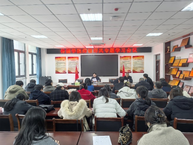 12月5日,英国正版365官方网站召开师德师风专题学习会。英国正版365官方网站领导班子及全体教职工参加会议,学院党委书记詹德全主持会议。