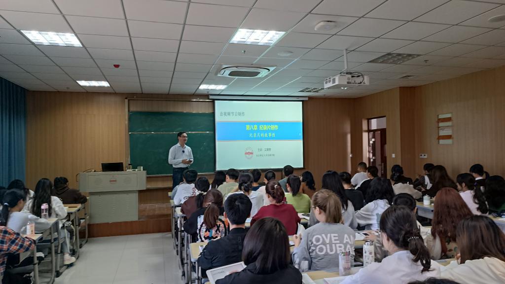 11月10日下午,文继奎老师的《音视频节目制作》公开课在K427教室举行。他以“纪录片的故事性”为引,将授课环节分为测试、答疑、讲解、补充、讨论五个步骤进行,充分利用雨课堂平台的功能与学生积极互动,带领学生深入思考,期间还观看了由本院毕业生拍摄的纪录片《茅坦社》,让学生获得更多启发。