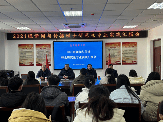12月27日上午,英国正版365官方网站2021级新闻与传播硕士研究生专业实践汇报在K408、K507进行。该次汇报是研究生专业实习实践心得总结和成果集中展示,同时还是学院研究生人才培养的重要教育环节。2021级全体研究生参加,学院党委书记詹德全、副院长王业明、副院长段萱、党委副书记张万茂以及专业教研室主任等教学委员会成员出席并进行评审。