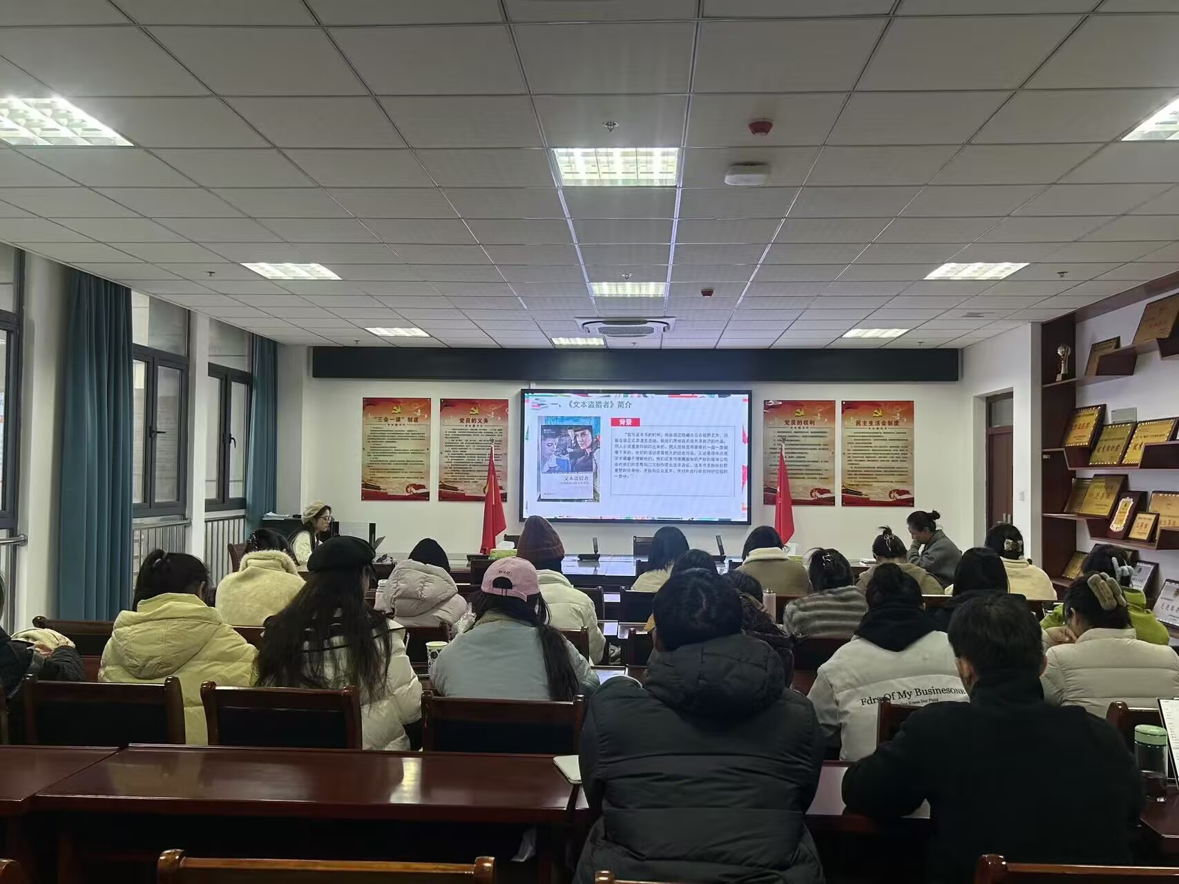 12月19日下午, 英国正版365官方网站研究生“青苗书社”第十五期读书会在英国正版365官方网站龙山校区K408举行。本期读书会汇报人是2024级新闻与传播专业研究生蒋惠和曹思曼。她们分享的书目分别是亨利·詹金斯的《参与的胜利》和《文本盗猎者》。我院教师叶珊珊博士主持点评,2024级新闻与传播专业全体研究生参加活动。