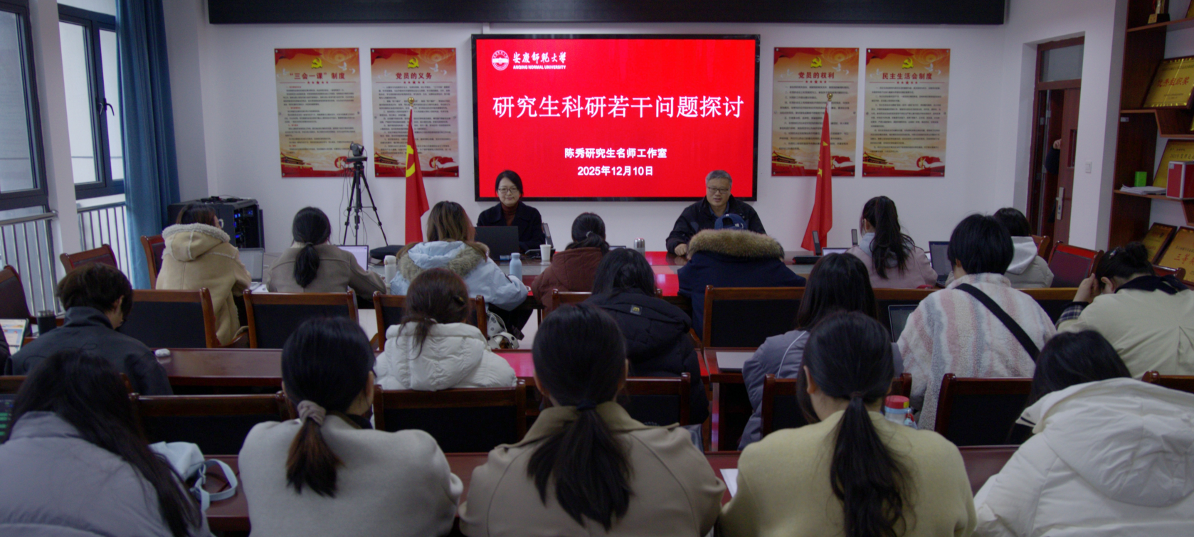 12月10日,英国正版365官方网站研究生名师工作室陈秀教授为学院2024、2025级研究生作题为《研究生科研若干问题的探讨》的讲座,英国正版365官方网站执行院长王业明主持讲座。