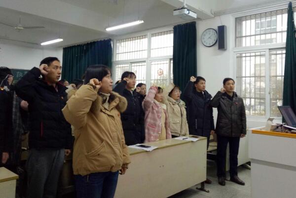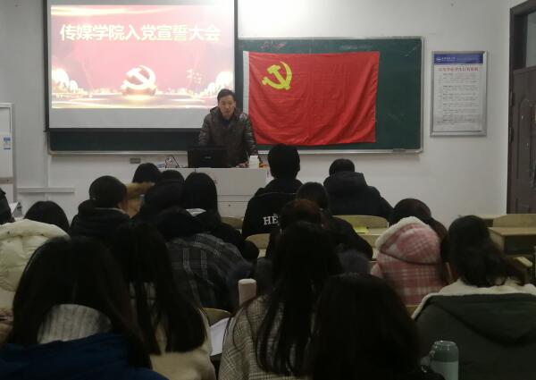 1月2日下午,学院在文渊楼102教室举行新党员入党宣誓仪式暨老党员重温入党誓词活动。院党总支副书记张万茂、学生党支部书记和全体学生党员参加了活动。会议由新闻学学生党支部书记李俊主持。