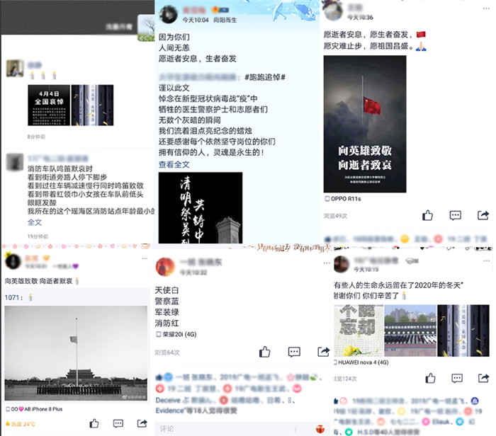 上午10时,防空警报鸣响,全体同学肃立低头,怀着无比沉重的心情默哀三分钟。随后,学院各班级陆续在线上开展主题教育活动。