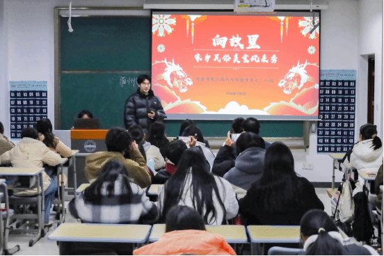 除了美食,家乡的过年习俗也是学生们关注的焦点。来自安徽省铜陵县、新闻传播学类专业2023(8)班的王欣宇介绍,在徽州的各种舞龙形式中,板凳龙堪称一绝。“板凳龙不仅仅是一种娱乐活动,更是团结精神的象征。”王欣宇回忆,每逢佳节或重大节日,各家都会搬出自己的那一节板凳,在空地上连成一条完整的龙,此谓“接龙”,寓意着来年四季平安、五谷丰登。