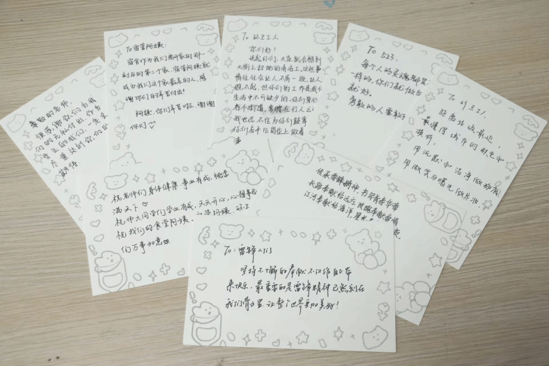 “感谢你的无私付出”、“祝愿你们事事顺心、万事如意”“祝大家平安喜乐”……随着活动的深入,越来越多的学生加入到写明信片的行列中,将手中的明信片写给他人,“我是写给宿舍阿姨的,在离开家后宿舍阿姨就成为我们在学校生活中最亲近的人,关注着我们的生活起居、生命安全,为我们服务着,所以我也想借此机会向她们表示感谢,谢谢她们的辛苦付出。” 新闻传播学类专业2023(2)班余越说,“在参与这次活动的时候,我想到了很多曾经忽略的习以为常的事情,都是身边的人默默在做,我之后也会对他们时常保持感恩之心。”