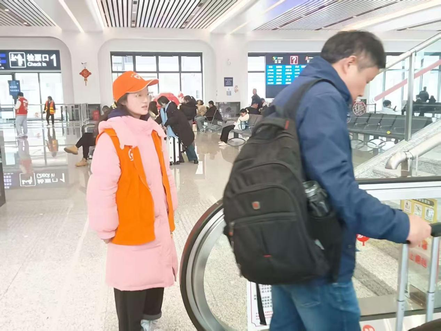 在志愿者的引导下,旅客们轻松地找到了进站口,避免了在人群中盲目寻找的困扰。一位背着沉甸甸行囊的旅客说道∶“当我拖着行李箱,带着对家人的思念踏入车站,一位面带微笑的大学生志愿者主动上前,询问我是否需要帮助。这让我十分感动。”他们的存在,不仅为春运期间的车站增添了一份温馨,更让每一位旅客的归家之路变得更加顺畅和安心。