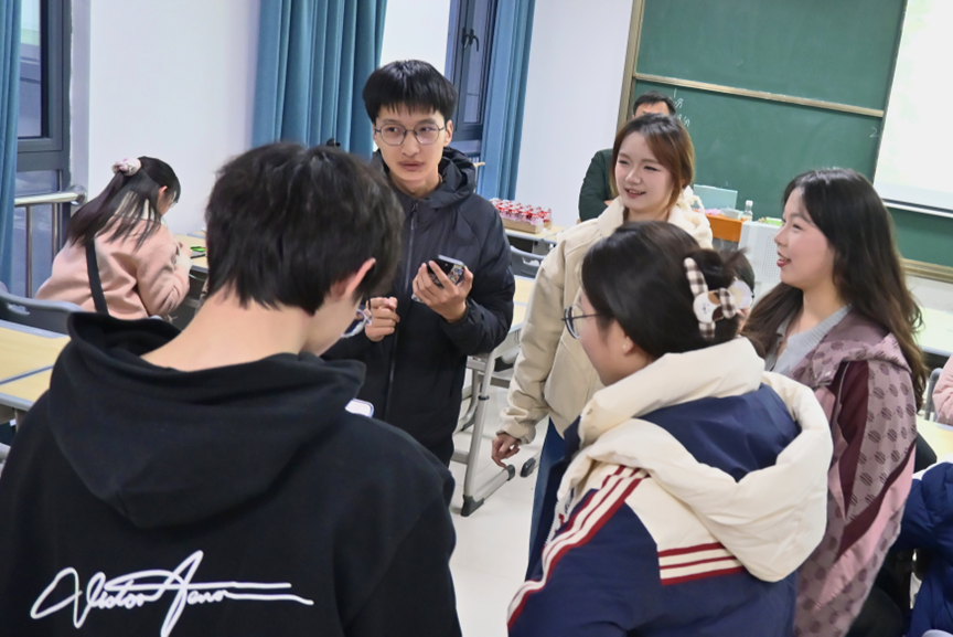 “马路上经常有什么?”“两种动物,一个在飞,一个在跳,打一成语?”活动以“你画我猜”游戏开启,学生们生动的语言搭配着灵活的肢体动作,将一个个词条变得活泼。经过9轮激烈角逐,“六六大顺”小组凭借默契配合拔得头筹。小组成员、新闻学专业2023(2)班的王欣宇表示,对于此次获奖她感到非常意外,因为小组成员刚开始互不认识,但令她意外的是,大家竟配合得如此默契。“通过这个游戏环节,我与小组成员逐渐熟络了起来,它帮助了我和大家的‘破冰’。”王欣宇笑着说。