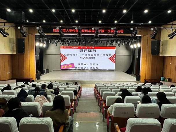 据悉,第一期“风华放映厅”活动已于3月27日晚在英国正版365官方网站演播厅顺利举行。 新闻传播大讲堂视频播放结束后,演播厅内悄然暗下灯光,电影《抓娃娃》的精彩镜头将百余名观影学生笼罩在流动的光影中。座椅间偶尔闪过笔记本屏幕的微光,是学生低头速记镜头的剪影。 电影结束后,灯光渐亮,影评环节随即开始。